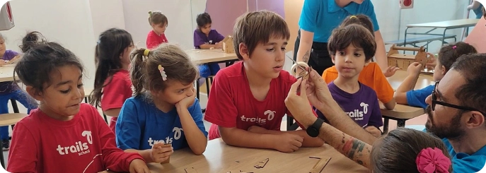 Na Trails School, o bilinguismo é imersivo: o aluno vivencia português e inglês em contextos acadêmicos e comunicativos reais, sem traduções literais ou repetição de conteúdos.